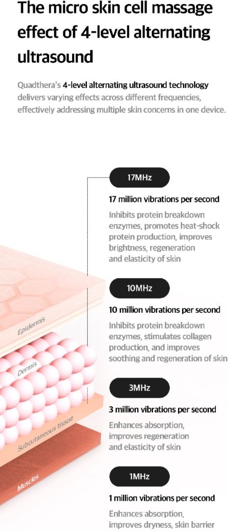 以Quadthera交替斑點微細胞按摩效果,由肌底細緻改善肌膚,效果經臨床。